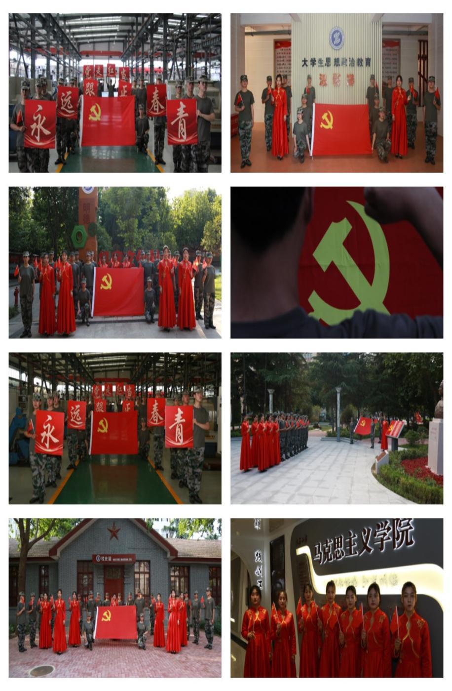 此次向党告白系列活动,分三个阶段举行,第一阶段,校团委发出倡议,建党100周年倒计时10天时,倡议全体团员青年,用真诚而朴素的形式向党告白,用青春力量为党的事业添砖加瓦。线上与线下同步,在图书馆广场,团员青年在一张张红色祝福卡上写下对党的祝福,线上通过新媒体平台表达向党表白祝福和热爱之情,向母校表达感恩之情。第二阶段,依托校园内的一馆、一园、一廊、一空间等文化育人平台,在红色文化广场,机床文化园,校史馆等学校标志性建筑物,团员青年代表变换不同的队形与党旗同框合影,向党告白,定格青春最美的瞬间。一面面辉煌的旗帜,祝福伟大的中国共产党100岁生日快乐。第三阶段,团员青年代表以“青春向党、歌声嘹亮”为题,集体唱响红色经典系列歌曲,在昂扬嘹亮的歌声中,唱出了工院青年对党的无限热爱和坚定信仰,激发唱响青春之歌的奋斗豪情,弘扬爱国主旋律,坚定理想信念,厚植爱党爱国情怀。