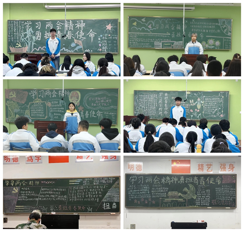 为深入学习贯彻全国“两会”重要内容及精神,准确把握“两会精神”实质,引导广大团员和青年关注国家大事,增强政治意识,厚植爱党爱国情怀,强化作为团员青年的使命担当,凝聚奋进前行力量。校团委制定活动方案,在各二级学院团总支精心组织策划下,全校各班团支部于3月13日晚自习开展了“学习两会精神,勇担青春使命”主题团日活动。