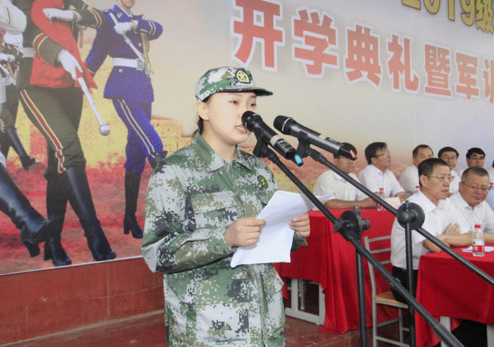 在教师代表吉武庆和在校生代表黎淼、新生代表孙小春发言后,承训部队首长、军训团团长李凯本讲话。他希望同学们珍惜军训机会,在接下来的军训中,服从命令,听从指挥,磨练心志,为以后成为祖国的栋梁之材打下坚实的基础;希望教官们科学组训、正规施训,严格要求,确保质量,真正使参训的同学们受益匪浅,终生难忘。