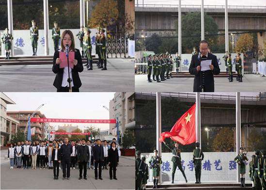 6时50分,升旗仪式开始,国旗护卫队迈着整齐的步伐入场,在激昂的国歌声中将国旗徐徐升起。同学们肃穆而立。