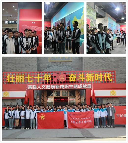 为热烈庆祝中华人民共和国成立70周年,教育广大团员学生不忘初心、牢记使命,11月14日下午,院团委组织第十三期“青马工程”培训班部分学员参观了“壮丽七十年 ž奋斗新时代——富强人文健康新咸阳”主题成就展。